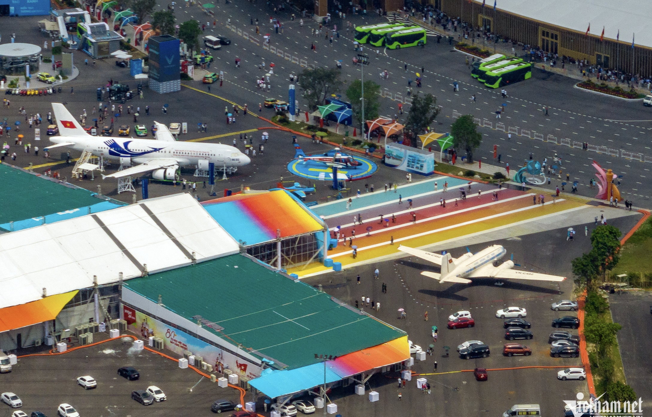 Máy bay thể thao nhào lộn, phi cơ IL-14 của Bác Hồ, tổ hợp pháo phòng không, trực thăng cứu trợ và nhiều phương tiện, vũ khí khác đã góp phần tạo sức thu hút cho triển lã...