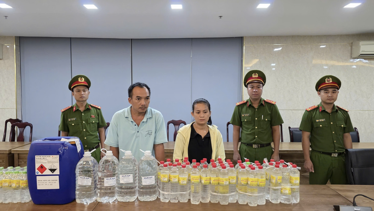 Kết quả điều tra cho thấy, thay vì sản xuất giấm gạo lứt theo phương pháp tự nhiên, các đối tượng đã dùng axit công nghiệp pha loãng với nước giếng khoan theo tỷ lệ 2 lít...